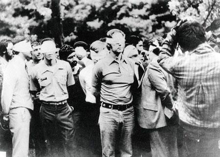 روز 20 اسفند 1358 امام خمینی در پیامی به مناسبت تشکیل «هیأت بررسی جنایات شاه و دولت آمریکا»، برای ملاقات اعضای هیئت با گروگانهای آمریکایی شرط تعیین کردند. امام در این پیام فرمودند: «اگر هیأت بررسی، نظر خودش را در تهران، درباره جنایات شاه مخلوع و دخالتهای آمریکای متجاوز ابراز داشتند، ملاقات با تمامی گروگانها بلامانع است.» امام در عین حال خاطرنشان ساختند: «رونوشت کلیه مدارک مربوط به دخالت آمریکا و شاه خائن را باید در اختیار هیأت بررسی و تحقیق جنایات دولت آمریکا و شاه گذاشت؛ و دانشجویان مسلمان هم اگر مدارکی در این مورد دارند، رونوشت آن را در اختیار این هیأت بگذارند»