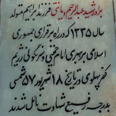منبع: فرهنگ اعلام شهدا: استان خوزستان، ج 1، تنظیم: مرکز مطالعات و پژوهشهای بنیاد شهید و امور ایثارگران، تهران، نشر شاهد، 1395، ص 572.